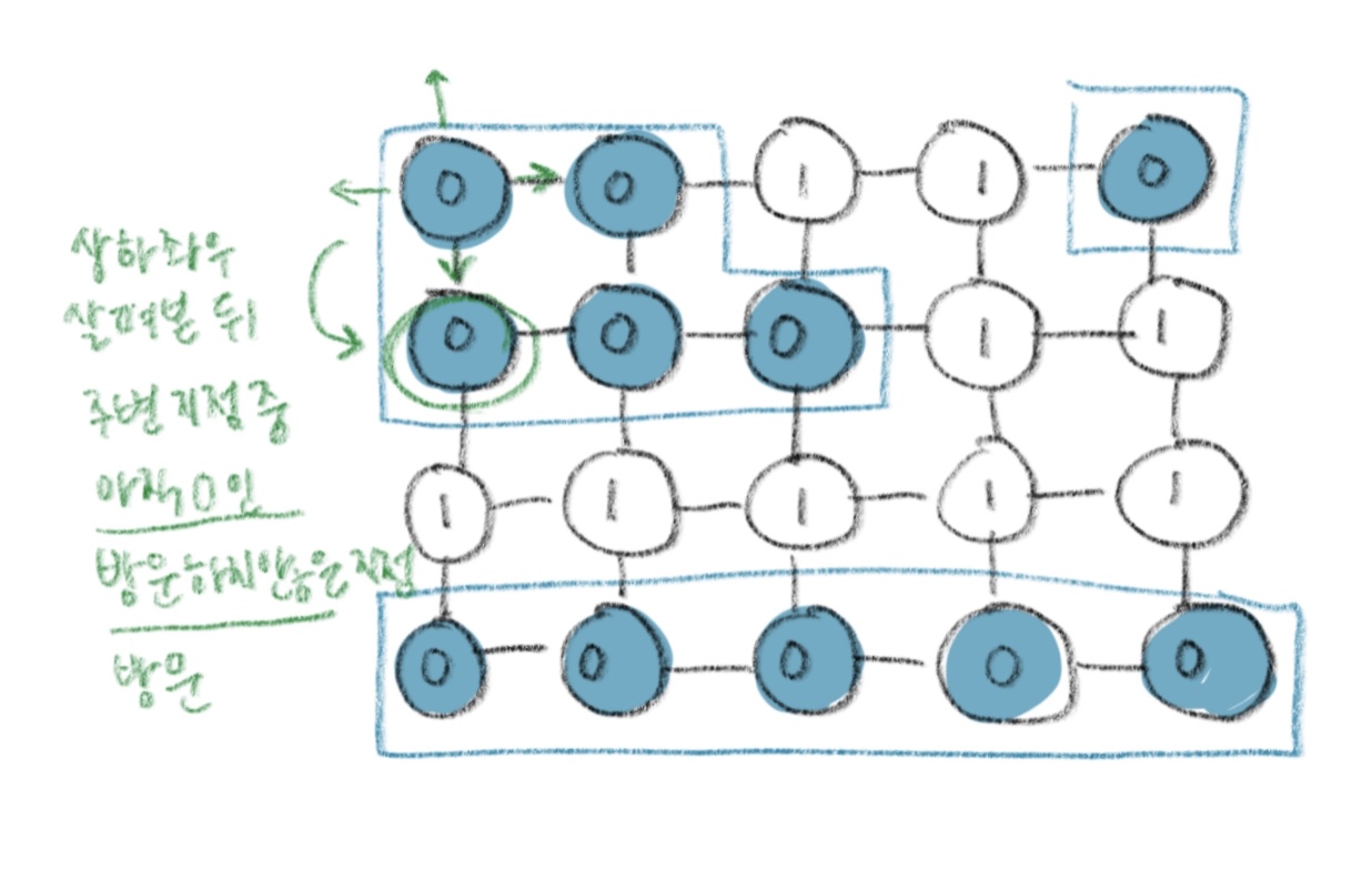 💡방문한 지점에서 다시 상하좌우를 살피면 연결된 모든 지점에 방문할 수 있다