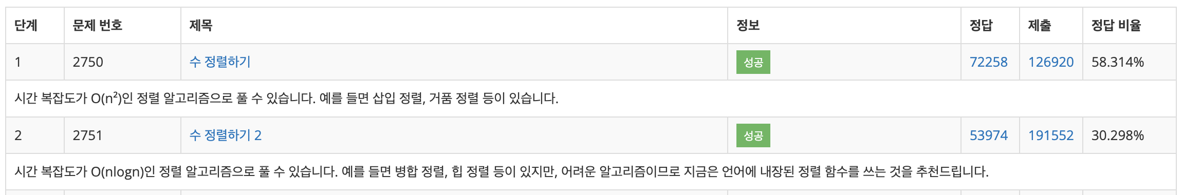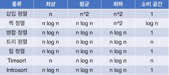 | 정렬방식 | 시간복잡도 | |