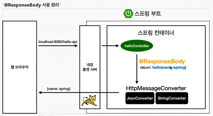- 'viewResolver' 대신에 'HttpMessageConverter'가 동작